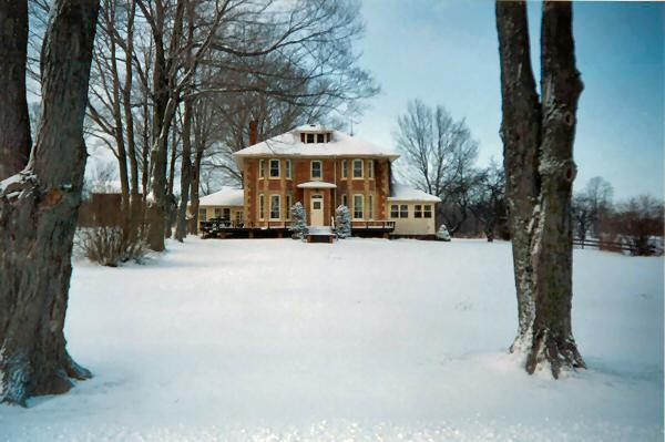 take their name. Members of the Frame family resided in this house until the early 1920's. The home was destroyed by fire in 1936. The bottom photo was taken in 2000 and features the home built by Clifford Winch to replace the former Wood/Frame house in 1938.