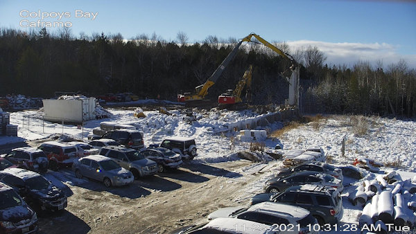 Figure W6E shows a time-lapse video from November 15 to December 15, 2021 as sourced from Caframo's webcam. In the end, the imposing walls of the structure were broken down into gravel and levelled across the land where it once stood.